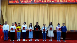 接着,司法考试奖学金获奖员工代表徐世莲和西窗法雨助学金获奖员工代表白慧发言,号召同学们不忘初心,勤奋学习,常怀感恩之心,用实际行动回报国家和社会。