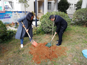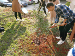 下午4点,全体同志在文政楼边的植树点集合,活动开始后,大家积极参与,互相协作,干劲十足,将一棵棵充满生机和希望的树苗植入坑内。种完树后,师生们又为它们浇灌生命之水,植树活动有序地进行,现场气氛热火朝天。一棵棵树苗象征着一片片绿色的希望,一滴滴汗水代表着每一位党员的对校园环境的关爱。