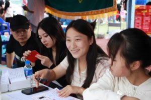在迎新帐篷中,志愿者为新同学们详细且耐心地介绍了有关开学的流程和细节。大家分工明确,彼此配合,全力以赴为新生解疑答惑,确保迎新工作有条不紊地进行着。